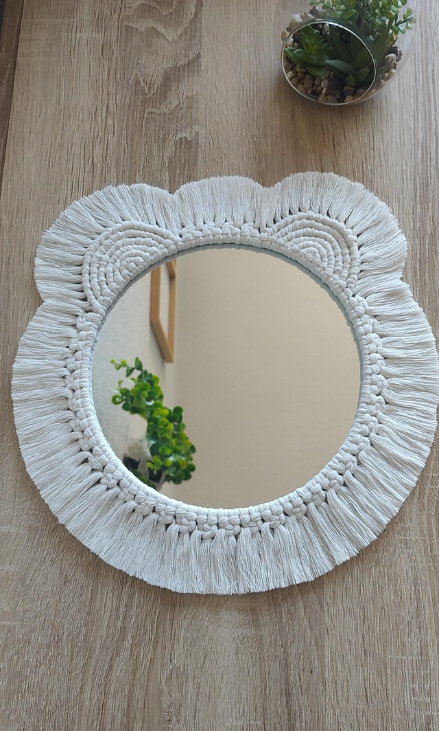 Miroir macramé ourson blanc - Déco bohème chambre bébé/enfant
